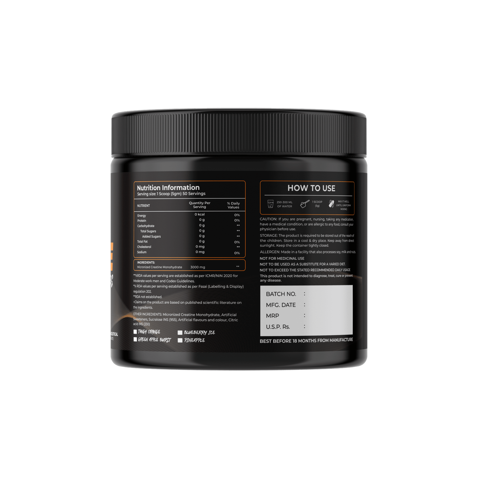 Micronized Performance: Features high-quality micronized creatine monohydrate for improved solubility and muscle absorption.