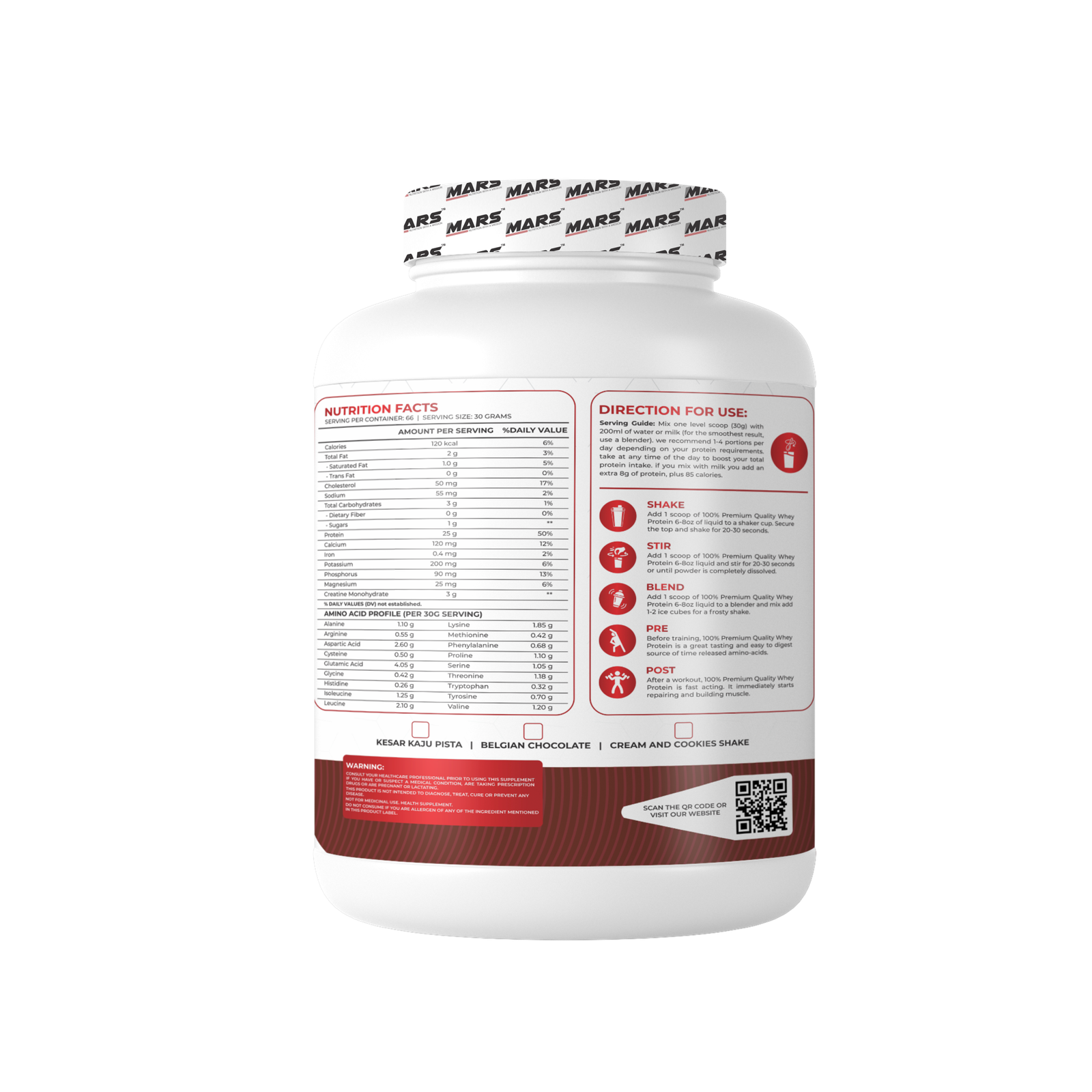 MARS Advanced Whey Protein Concentrate is designed for individuals who are serious about fitness, strength, and recovery. Made with premium-quality whey protein, it provides 25g protein per serving, helping build lean muscle mass and support faster post-workout recovery.