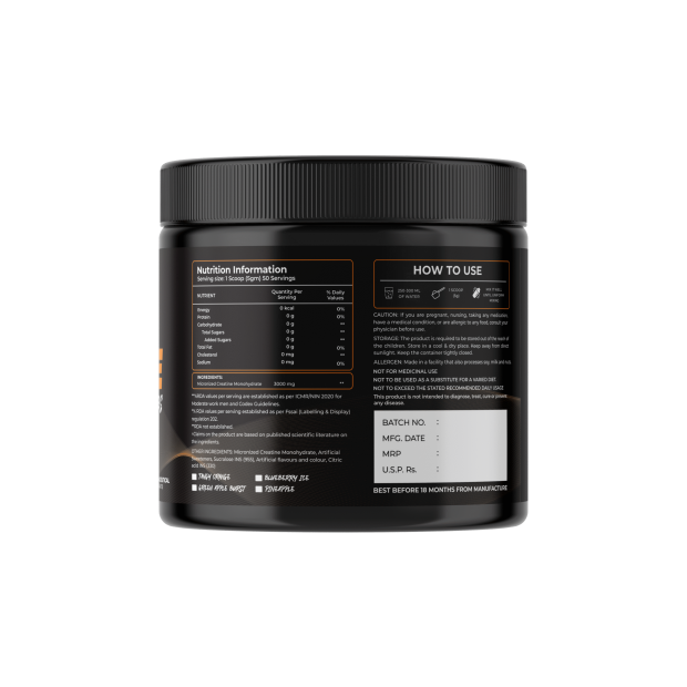 Micronized Performance: Features high-quality micronized creatine monohydrate for improved solubility and muscle absorption.